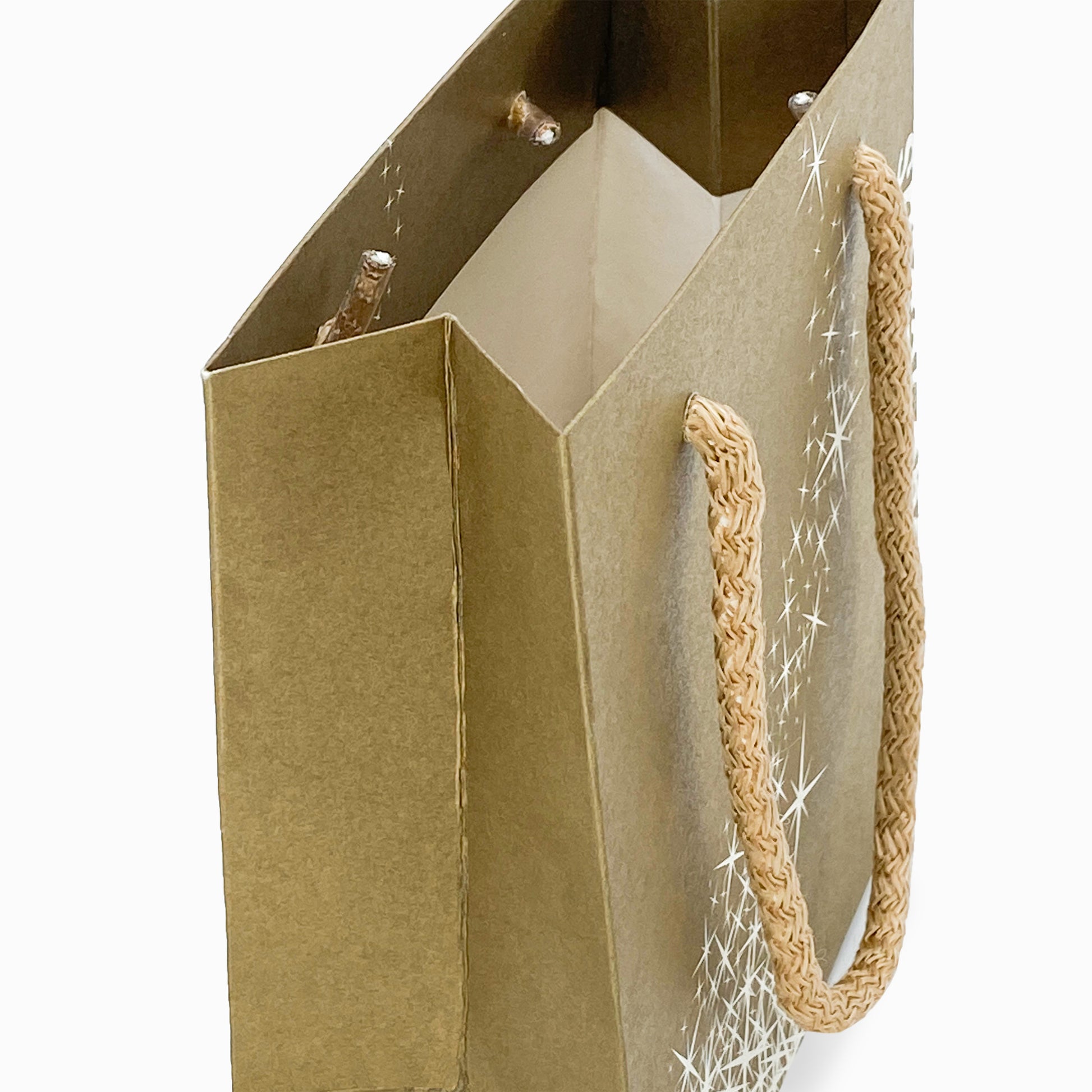 Este saco apresenta um design refinado com tema natalício com toques decorativos suaves e delicados. Feito de papel de alta qualidade, oferece durabilidade e estilo, enquanto as alças de cordão resistentes garantem um transporte confortável e seguro. Perfeito para presentes de natal, embalagens de varejo e promoções sazonais, este saco adiciona um toque sofisticado a qualquer celebração.